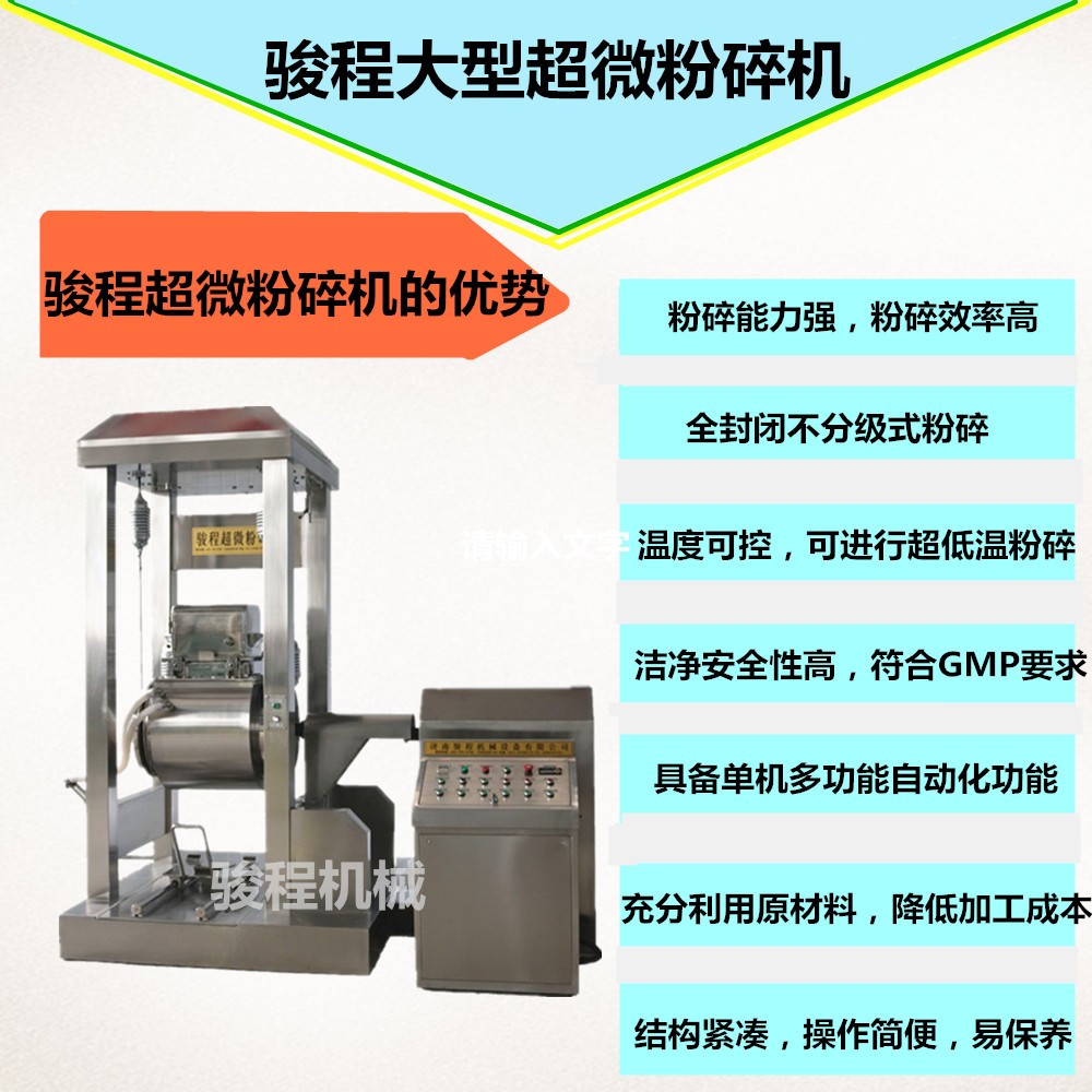 駿程冬蟲夏草超微粉碎機具有一機多用功效,微粉后僅需一步便能得到產品,大大地簡化了生產工藝,降低了生產成本。中藥制藥工藝是一個相當復雜的過程,只有把控好每一個制藥環節,中藥質量才能得到更好的保障,而制藥粉碎設備是生產工具,是制藥企業生產的技術基礎。研發先進制藥粉碎設備,創新藥用粉碎工藝技術,提高中藥產品的數字化質控水平,是濟南駿程機械設備有限公司的不斷追求。