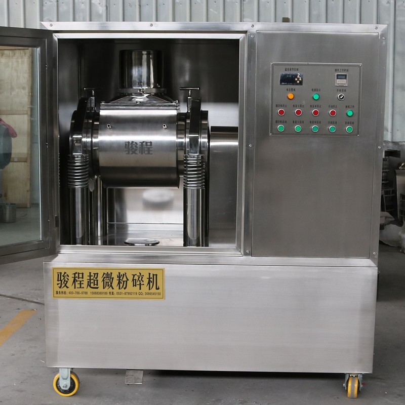 駿程振動式超微粉碎機屬振動式研磨機,利用磨介高頻振動、沖擊性剪切、摩擦和擠壓等作用將顆粒粉碎,達到超微粉碎的效果,增加藥物顆粒的比表面積,提高了生物利用度,有利于復方中各有效成分的均勻化。能使藥材粒度達到細胞破碎級,使藥物細胞間和細胞內有效成分直接釋放出來,提高藥物中有效成分的溶出速度和溶出率。